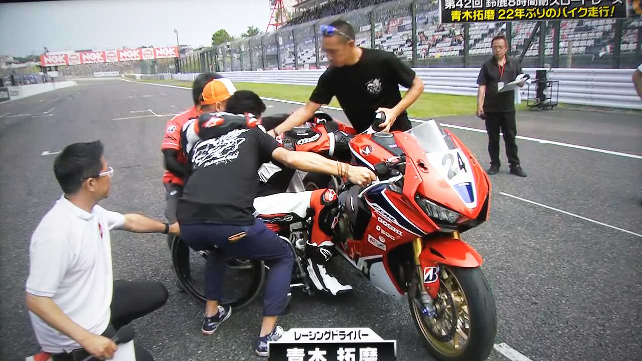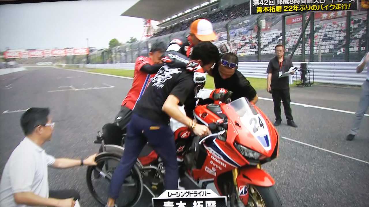 うちで、8耐の表彰式とか見られたり、80's の話とか、いろいろしたあと、仕事に行かれました。