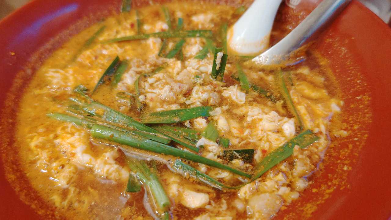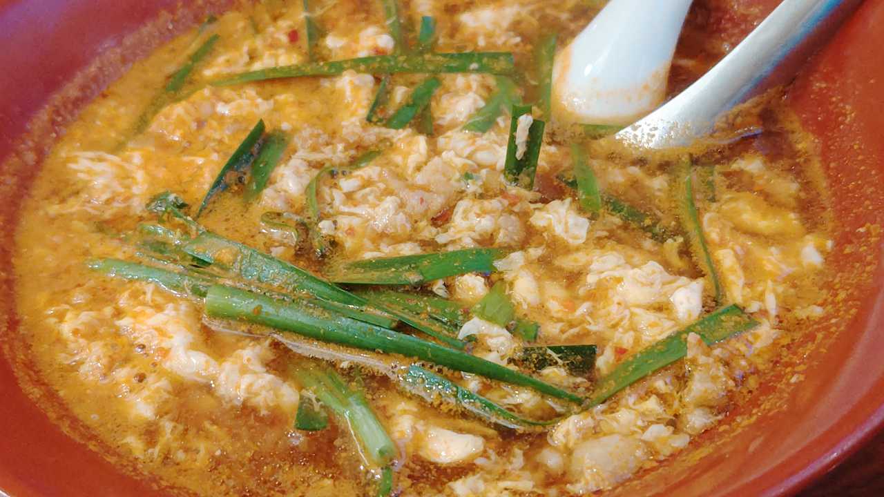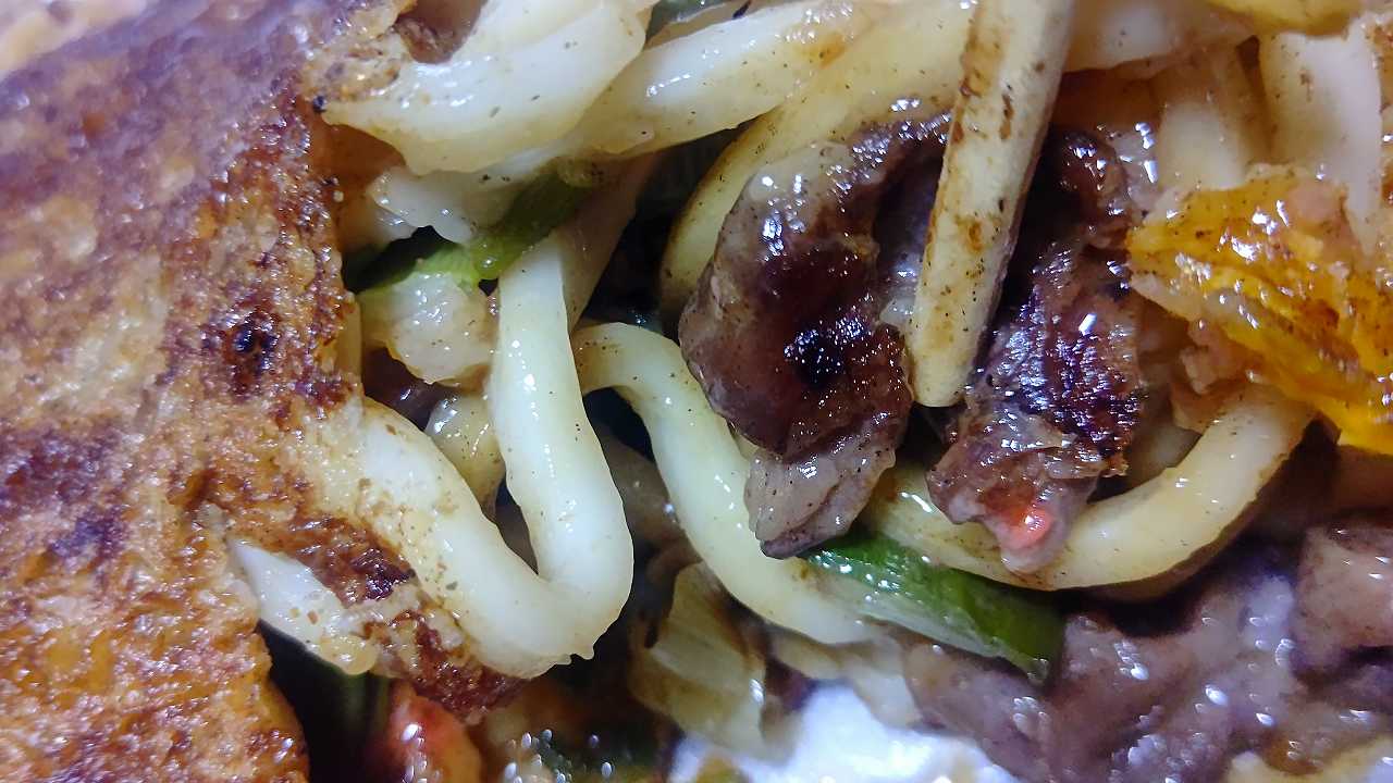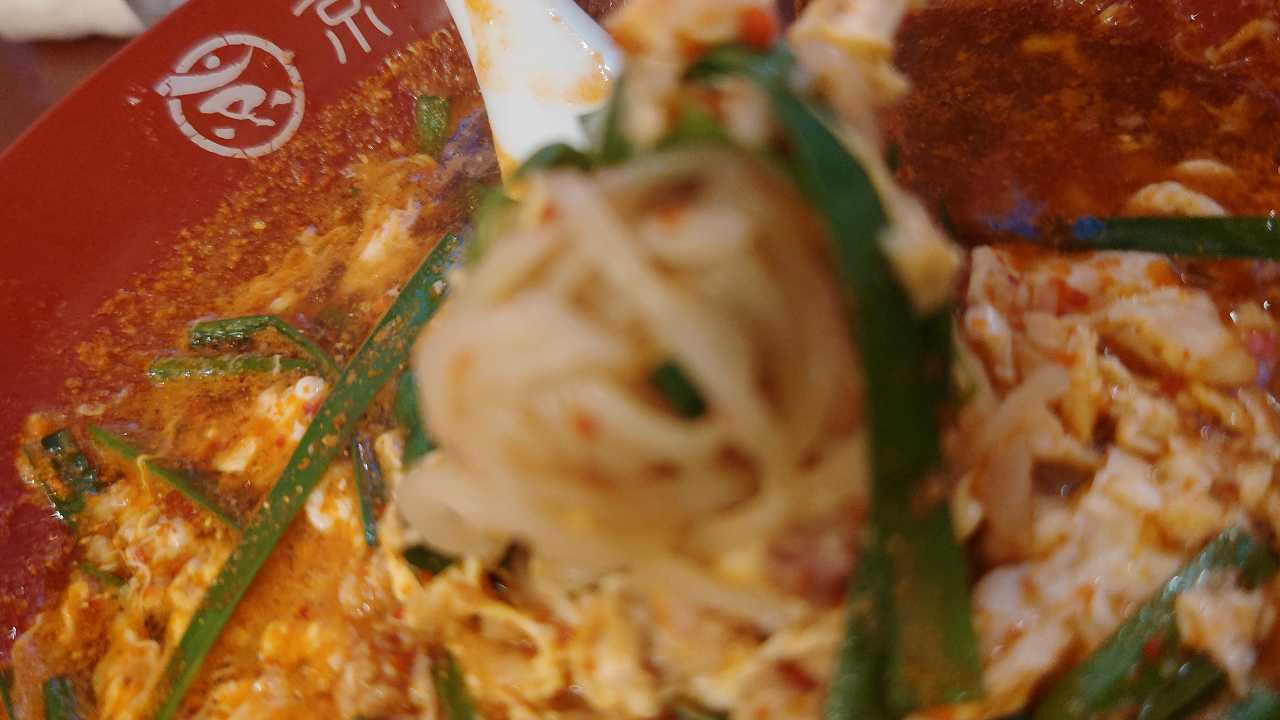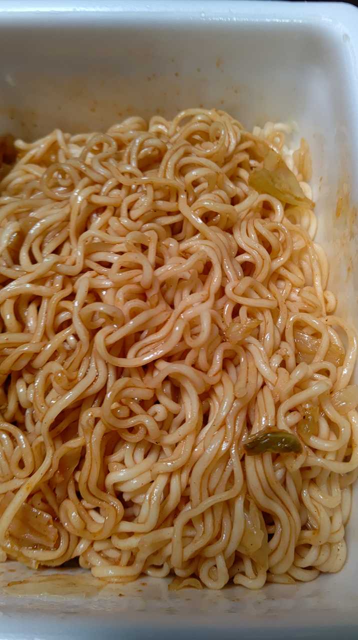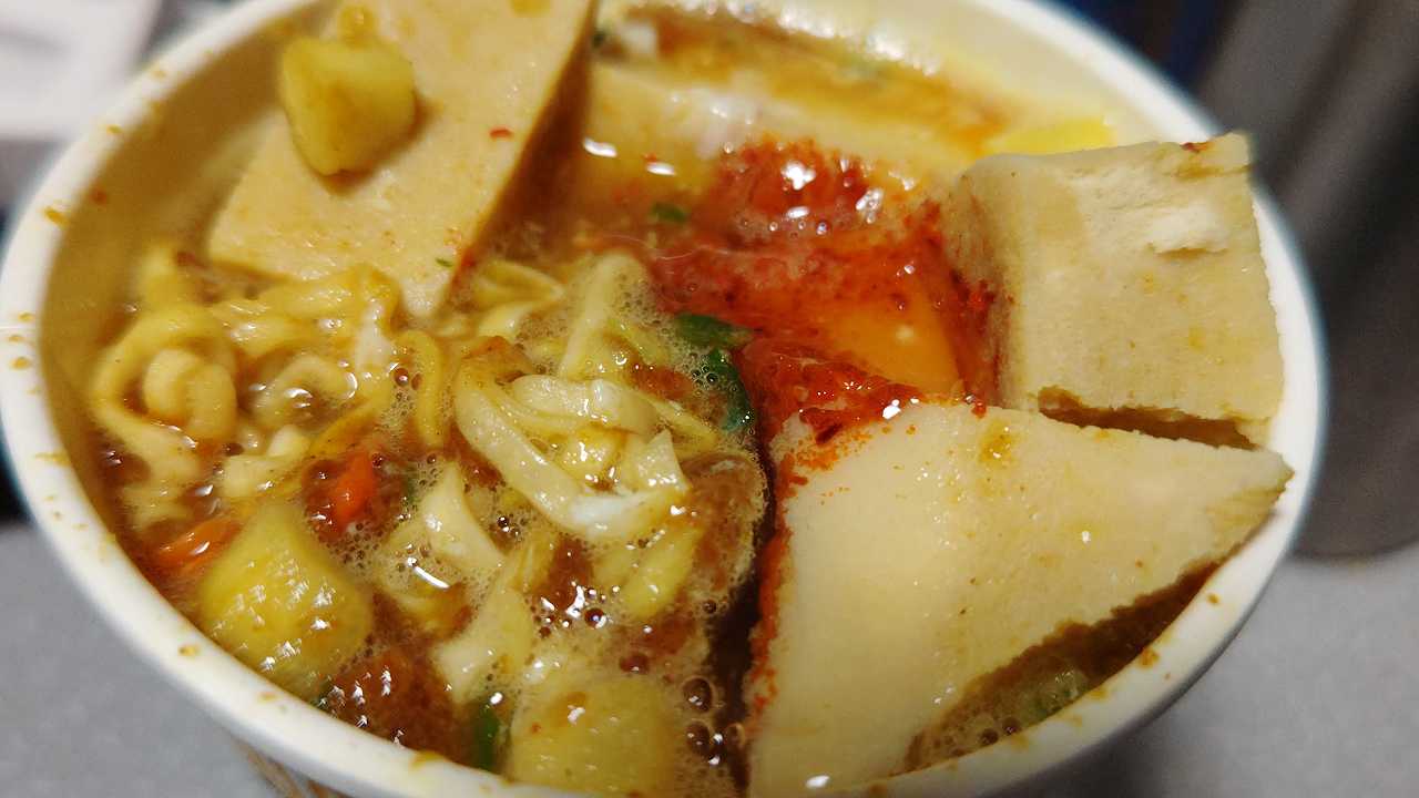 カレーヌードルに玉子と高野豆腐入れました。あと熱辛唐辛子