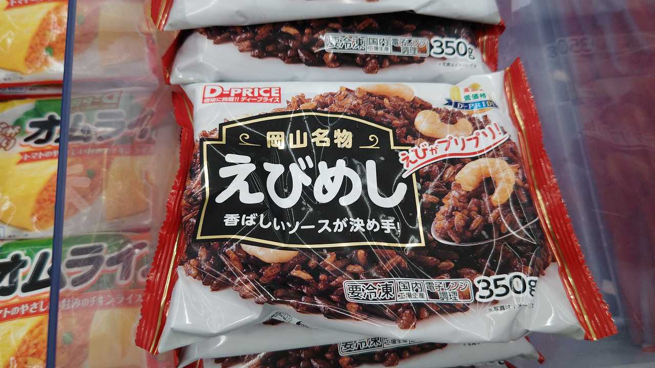 この前、変なZ34で、岡山のソウルフードってやってた、えびめしが、ラムーに売ってた