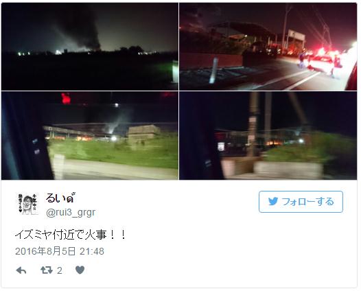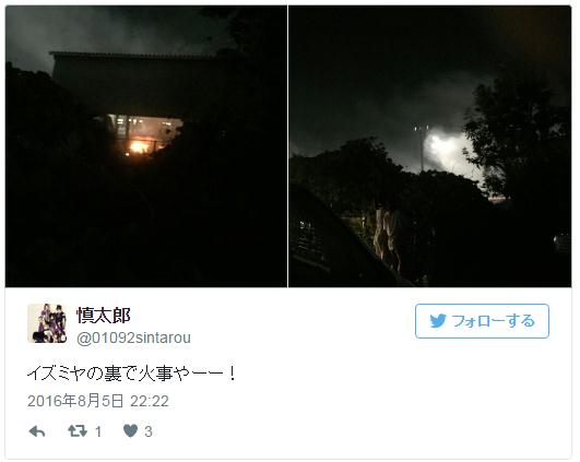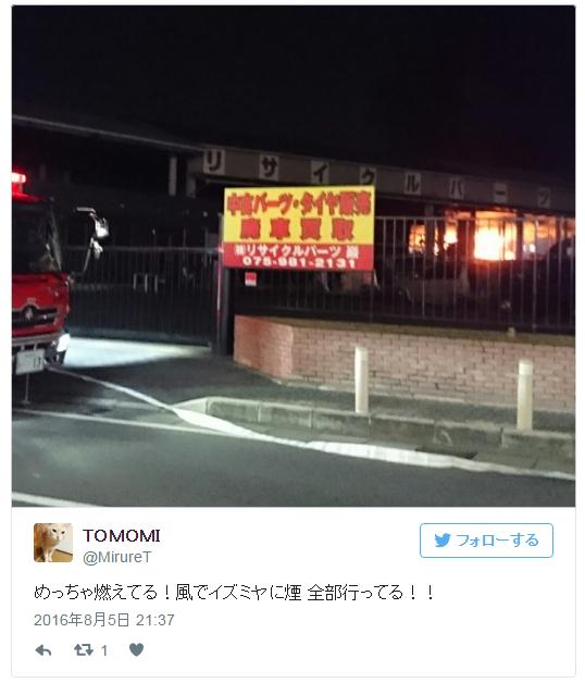 【火災情報】八幡市八幡一ノ坪で大規模な火事、イズミヤの裏手付近