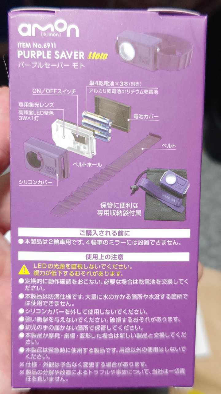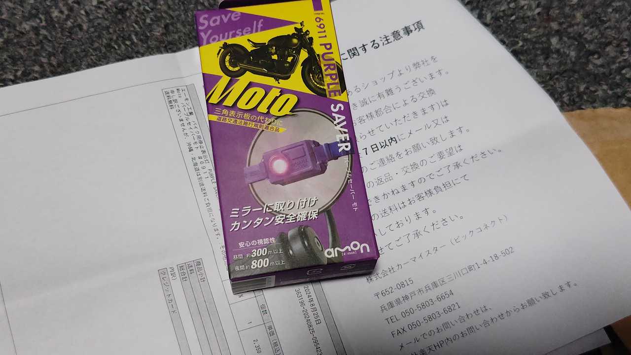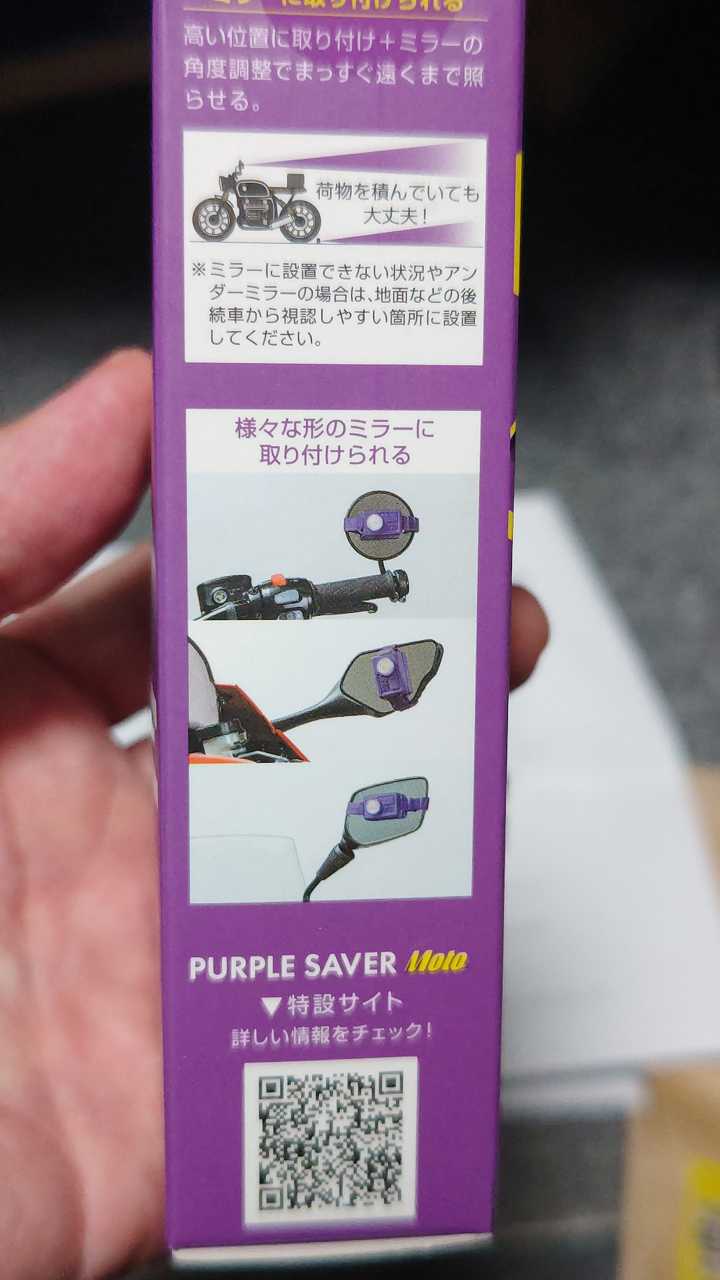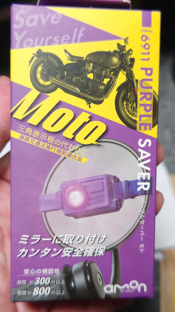 更にコンパクトなバイク用も昨年10月に発売いたしました。 #パープルセーバーモト はミラーに設置出来ますのでより高い位置から後続車へアピール出来ます✨またいつかご検討いただけますと幸いです🙇 #エーモン https://t.co/rFOEqN1m6E