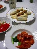 今日も長女のヘルシーメニューです。手前がえびチリです。海老は揚げずに蒸して油を極力使わず調理。ダイエッターな我が家は春巻きも揚げずに焼きます。しかも中身はサラダ風にキャベツとキクラゲ。これで100kcalちょいです。