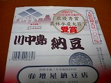 納豆騒動も終息して最近は普通に納豆を食べられるようになった。この納豆は信州産の大豆を使用した大粒納豆。「豆を食べてるなあ~」という気分になる。大粒信州大豆100%使用【農林水産大臣賞受賞】『川中島納豆』