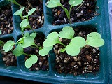 10/15に播種したもの。本葉がちらほら出始めたところ。夕方、雨の中を収穫に行ったら、久しぶりに冠水状態だった。