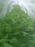 防虫ネットの中で順調に成育中。ほうれん草の葉もそれらしい形になってきた。