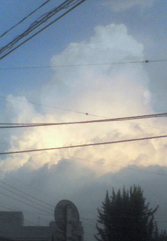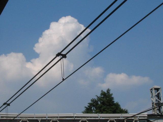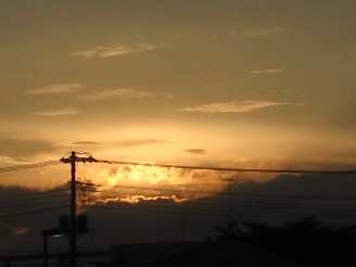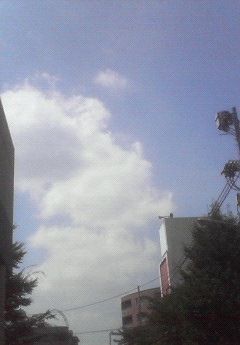 今日は、歯医者に行ってから、彼の家にお土産を届けにいきました。で、そんなに長居する予定はなかったのに、がってん寿司までおごってもらっちゃって、すごうおいしかったです。がんてん!!・・・・いらっしゃいませー( ゚Д゚)あれが驚きました。そーだ。今日は、雲がきれいだったのに、デジカメわすれた・・・あほ・・・精一杯のシャメですwwその後、雷雨で、せっかく雨の中おばちゃんが迎えに来てくれて、3人でビチョビチョになりながら帰ったのに、家について、10分ぐらいで、やんじゃいました。一番雨が強いときに、ウチらは、雨に打たれていたようですwwこんなのもいい思い出ですねwwあしたから、お姉さんが帰ってくるようなので、月曜日また、お邪魔しようと思います。