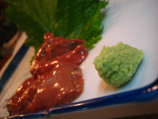 今日は隣のバイト先のお姉さんと、その彼氏さんと私で居酒屋に行きました。でも、いつもいく居酒屋ではなく、カウンターで店長のおじさんとはなしたり、飲みあったりする大人の居酒屋でした。家からちかいし、いきやすかった。もう、出てくるものも、すごくおいしくて、全部始めて口にするもので、すごく酒が進みました。珍しいことです。これが、一番かんどうした、しろっぽいレバ刺し(´▽`)レバーなのに、焼いてもぱさぱさしないし、すごくうにっぽい味がして、おいしかったヽ( ゚ 3゚)ノ絶対に特別な人にしかおしえてやらないんだぁ~