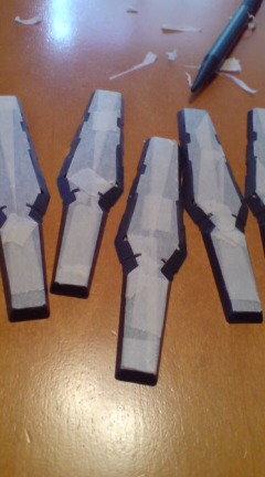 ハインド・カインド(発売中)の関節部分を模型雑誌を参考に彫りこみました。右が彫りこみ前左が彫りこみ後です。 彫りこむことによってグッとカッコ良くなります。 今回使用したキット鉄(くろがね)のラインバレル ハインド・カインド コトブキヤ(発売中)「ハインド・カインド」を楽天市場で検索&価格比較「鉄のラインバレル」関連商品を楽天市場で検索&価格比較