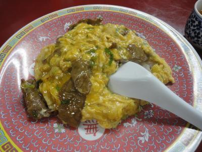 シンプルな雲吞と、牛肉と卵の丼です。美味しそう。実際、美味しかったです。