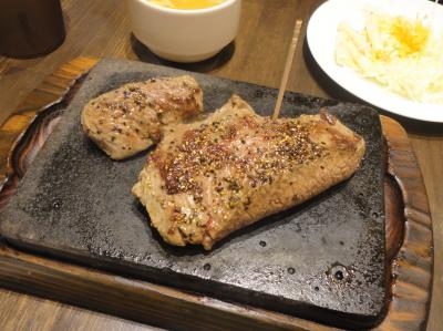 ステーキが2つです。イチボもミスジも1000円でした。消費税込みが嬉しいですね。
