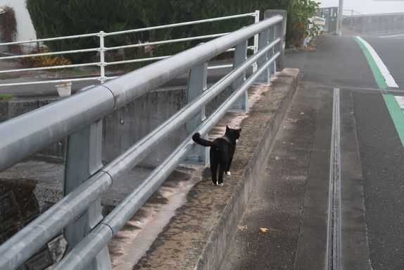 その中を鯉に投餌散歩。小平手前にさしかかると、今朝もカラが走って来ました。背中が白いのは露に濡れながら杣夫を待ってくれていた証拠。つれて帰り、家猫にしたいなぁ。