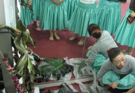 Hokuloaです。今日は恒例の生徒さんのレッスン報告です。その前に、お知らせです。ハワイ州観光局後援【「ホクレア号日本航海記念 ガイアシンフォニー第三番」自主上映会開催決定!】 日時:12月9日(日)17:00開演 場所:スガイシネプレックス札幌劇場 札幌市中央区南3条西1丁目札幌スガイビル チケット:前売り1,500円 当日1,800円 (札幌市内 道新・大丸・4プラ各プレイガイドにて販売中) *ハワイを知る上で、まずは知っておいて欲しいホクレア号。 ハワイに興味をお持ちの方は、是非とも上映会に足をお運び下さい。私とKapuahaulaniさんのフラを始めた頃からのフラシスが「北海道ホクレアohana (愛好会)」のメンバーとしてこの企画に参加しています。どうぞ宜しくお願い致します。~~~~~~~~~~~~本日のブログ担当のchieです。今週から夜のクラスもスタートし、新しいスタジオにも馴染みつつある我がハーラウですが、今週はスタジオが使用できず市民会館でのレッスンとなりました。初・中級クラスはベーシックから始まり、カヒコ、アウアナのおさらいと進みました。そして、2クラス合同で来週あるイベントの曲を練習しました。「みんなで一緒に踊ることを意識して!」「一番大切なのは表情よ!全身を使って語りかけるように!!」とHokuloa先生にアドバイスをいただきながら全員で何度も踊りました。当日はステキな笑顔で見てくださる方々に語りかけられるように頑張りたいと思います。レッスン後、来週のイベントで使用するためリボンレイ作りに励みました。 リボンレイは裁断、マーキング、裁縫などなど細かいことが苦手な私には なかなか大変でした。 しかーーーーし!このリボンレイをチョイスしてくれた我がハーラウのMちゃんは、そこのところもよく考えてくれていて、仕上がりに差のでにくい物を選んでくれていました。 おかげで皆さんはもちろんのこと、私でもとっても素敵なレイが作れました。Mちゃんありがとうドキドキのステージもこのレイのおかげでちょっぴり待ち遠しくなりました。