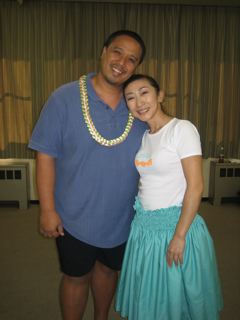 Hokuloaです。今日は北海道でのクムのレッスン最終日。日本校のクムクラスのレッスンが3時間。(日本校については、後日このブログにてご案内致します)その後にワークショップが午後と夜に2つ行われました。午後のワークショップは大勢の方の参加があり、「Kaleohano」 の美しい曲に合わせ、クムリッチのグレイシャスな振り。夜は一転してアップテンポの曲に合わせ、コンテンポラリーな楽しい振りの「Waikaloa」。ワークショップの写真は、一般の方が参加されているので、写真の掲載をそれぞれにお断りをしなかった為に残念ながら掲載が出来ません。申し訳ありません。その中で掲載出来るのが この写真。 夜のレッスンの参加者のご家族がお迎えに来ていて、とても可愛いケイキちゃんも一緒でした。振りを書き写している間、クムがミニレッスンを始めたんです。カヒコの振りをクムと楽しんでいるケイキちゃん。満面の笑みを浮かべてステップを踏む様子を見て、周りからは「可愛い~っ!」の連呼でした。 これをきかっけにフラが大好きになって欲しいですね。昨日・今日とクムリッチ・ペドリナのワークショップは、沢山の方々に参加して頂く事が出来ました。天候にもめぐまれ、遠くから来て下さった方にも幸いだと思っています。また次回企画した時には、このブログでもご案内致します。参加して下さった皆様に Mahalo nui loa !!!