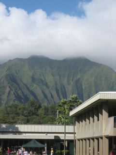 Hokuloaです。昨日は昼間から降り出した雨が夜にはどしゃぶりとなり、今日は肌寒い朝となりましたが、起きたら虹が出ていて気持ちの良い一日の始まりでした。写真を撮ったのですが、薄いしボケてるしでup出来ません。すみません。 今日は叩き起こされる事なく、7:00amには目が覚めて、のんびりと出かける準備が出来ました。今日は午前中にカネオヘでクープナのレッスンにお付き合い。コミュニティーの中にある集会所で皆さん集まってフラを楽しみます。メンバーは以前写真でご紹介したので、今日は集会所の写真です。 ここから見える景色もやはりコオラウ山脈。本当に美しいです。 この写真は夕方からまたレッスンに向かう時に撮ったものです。夕方からはケイキのレッスン。今日初めて入ったケイキカーネを見てあげる事になり、ノホカヒコを2番まで教えてあげました。ちゃんとカーヘアも言える様になりましたよ。日本では ケイキクラスをまだ設けていませんが、なかなか覚えも早く なんと言っても可愛かったですそれが終わったら、夜はワヒネとグレイシャスのクラス。ミーティングも含め終わったのは21:00を過ぎていました。お腹ペコペコでしたレッスンの様子を撮りたいのですが・・・それは無理です。なんと言っても自分が動いてますから・・・。レッスン終了後は顔が汗の塩でザラザラしていますが、そのままクムとフラブラザーと食事へ go! です。・・・今日はめずらしく女性は一人残らず帰ってしまいました。レッスン後暇なのは私だけ? と、時計を見たらすでに22:00。帰って当然ですよね。明日の朝は 寝坊が出来る予定です