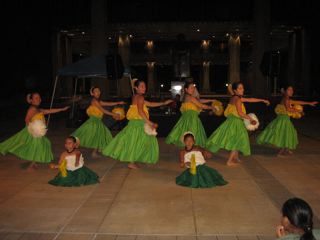 Kapuahaulaniです。以前ブログでもご紹介した、私がハワイに滞在する際の常宿での楽しいひとコマを、今回は同じ時期にハワイに滞在されていた、仲良しハーラウのフラシスター、Mさんご一行の笑顔とともにご報告したいと思います。まずは6月にはHokuloa先生も参加した恒例のバーベキューパーティ。私が行くと必ず1回はウエルカムパーティを開催してくれます。いつものおじさんバンドの皆さんも勿論参加して、歌っては飲み、踊っては食べ、お喋りにも花が咲き、フラのステップも軽やかに、笑顔笑顔のひと時です。 ラジオでお馴染み、仲良しハーラウのMさんも上の写真の様に、楽しく踊ってくれました。ホテルのロビーでも、恒例の演奏会はほぼ毎夜続き、私もこれまたいつもの様に、歌ったり(写真左)、Mさんの生徒さん達とも一緒に踊ったり(写真右)・・・・。下の写真はMさんご一行のフラ、皆とっても素敵でした。ハワイならではの雰囲気と、気持ち良さ、おじさん達の陽気でご機嫌な演奏が、皆さんすっかり気に入った様子で、とても喜んでくれました。 こう言う仲間達と一緒に、どこでもすぐに楽しめるのも、ハワイで素晴らしい仲間達に出会い、親しくなれるのも、やはり、フラあればこそ・・・ですよね。