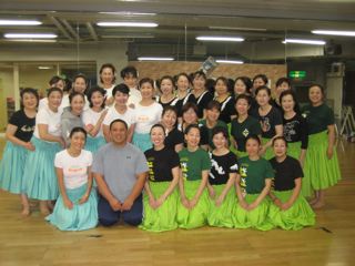 Hokuloaです。今日はクムリッチの来道レッスン2日目。昼間は日本校のレッスン・特別レッスン、そして一般公開のワークショップが行なわれました。札幌でのワークショップは今日で最終。ワークショップに参加して下さった皆様、ありがとうございました。また10月には来道して下さる予定でいますので、是非次回のご参加もお待ちしています。夜はワヒネのブランチレッスンが行なわれました。まだハーラウに入会して間もないメンバーも頑張ってレッスンを受けましたよ。 クムが一人一人ハンドモーションを見てくれました。 視線の先にはクムのお手本が 真剣です「ベーシックを長くお願いします」とクムにお願いしたので、皆さんみるみるうちに汗だくになりましたが、とても勉強になったでしょうやっとのブレイクタイムには余裕の笑顔が 今日注意された事をしっかりと頭に入れ、来週のレッスンに備えて下さいね。イベントも落ち着いた事ですし、来週からはビシ~ッと更に厳しくやりますよその汗だくなレッスンの後には 記念写真をバチリ 恒例の合同写真も そしてこの後遅くまで特別レッスンがありました。私の腰も足も湿布だらけです風邪をひいているメンバーが多く、あちこちで咳をしていました。早く治りますように札幌の皆さん、本当にお疲れさまでした
