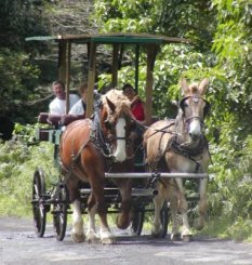 Kapuahaulaniです。今日は祝日で、街はクリスマス一色綺麗なイルミネーションが輝いています。そんな中、私は以前ラジオにも出演して頂き、フラカンファでもご一緒した、T先生のお誘いを受け、彼女のスタジオにお邪魔して参りましたとても綺麗で、ハワイアンな雰囲気満点の素敵なスタジオでした。今日は本場タヒチからタヒチアンダンスの先生をお迎えしてのワークショップが行われていたスタジオでT先生とお話をしながら、タヒチアンのワークを見学させて頂きました初めて見るステップ、素晴らしい技術と躍動感に非常に感動しましたフラとは全く違いますが、同じポリネシア文化の中枢を担うタヒチアンダンス、なかなか間近でじっくり見る事が出来ないので、こんな機会を与えて下さったT先生にとても感謝しています。先生、ありがとうございました本題に入りますが、先日Hokuloa先生がご紹介したワイピオ渓谷、今日は私と主人がワイピオ渓谷のホースバックライディングツアーに参加した際のお話をしたいと思います。Hokuloa先生が写真をアップしていたwaipio look out(展望台)から、もう少し先に行くと、谷の下に向かう道路があるのですが、国道から右折してその道沿いにドライブして行くと、ちょっとした住宅街があり、その一番奥に、ツアーを主催している会社の事務所があります普通の車で入って来られるのはここまで!ここからまず写真の様な馬車に乗り、渓谷の中にある馬牧場まで移動します。馬車の中ではワイピオ渓谷の歴史や伝説などのアナウンスがあり、周りにうっそうと茂っている植物などの説明も受けながら、暗く、湿ったジャングルの中をのんびりと進んで行くと、ジャングルが切れた所に広大な草原が広がり、そこにぽつんと馬牧場がありました(途中にはタロ芋の畑、タロパッチもありましたよ。日本のお米の水田みたいな畑です。) 馬車に揺られながらのんびり移動大草原の小さな家?と言う感じここからは一人に1頭の馬が与えられ、渓谷の更に奥まで乗馬を楽しみながら入っていきます。写真の奥に見える丘にも馬で登って行きました。かなり急な坂で細い道なので、とても恐かったのですが、慣れているのでしょうね、馬達は難なく坂道を登り、私達は上からの素晴らしい眺めを楽しむ事が出来ました私は過去に何度か乗馬経験がありましたが、初体験の方もいて、いきなり牧場の外に出ると危険なので、まずは枠の中を何周か練習させてくれました。それにしても、初乗馬で、あの渓谷越えはなかなかの大冒険だったでしょう 水の中も平気で渡って行く馬達渓谷の聳え立った崖には無数の滝が流れていて、馬で移動していると水の流れる音が聞こえてきます。私達の他には誰もいない渓谷の静けさの中に、マイナスイオン一杯の滝の音は、まさに神が住んでいるに違いないと思わせる様な、神聖で、ミステリアスな雰囲気をかもし出してくれました。このツアーは、道なき道を馬で移動し、渓谷の滝の中でも水かさの多い滝まで向かい、そこでランチをとって、滝つぼで泳ぎ、戻って来ると言う内容でした。しかし、この日のビッグアイランドは朝から雨模様で、私たちが移動中も、降ったりやんだりの繰り返し。気温も低かったので、とても泳ぐ勇気は出ませんでした私たちが泳ぐはずだった滝壷勿論全員が水着は持参していたんですけれどね。ランチ終了後、それぞれが写真を撮影し、寒いので予定より早くその場を離れる事になったのですが、滝つぼで泳ぐことが一番の楽しみだった主人が、どうしても諦め切れない様子で、名残惜しそうに水温を手で確認していたら、カウボーイでもある現地のガイドさんが、「Hey! You should jump in! Come on!」(飛び込めば良いじゃないか!)と一言その言葉に俄然やる気になった彼を見て、回りのツアー客(この時は我々以外に6名、アメリカ本土・カナダ・オーストラリアから参加していました)までもが、「Jump in! Jump in!」と掛け声を叫び始めて、大合唱になってしまい、長袖を着ていた私が寒いくらいだったのに、調子に乗った彼は、いきなり上着を脱ぎ捨て、滝つぼにJump inしてしまったのでした・・・・身体を動かさないと冷え切ると思ったのか、飛び込むと同時に泳ぎ始めた彼を見て、そこにいた全員が、彼はクレイジーだと盛り上がり、皆が彼の写真を撮りはじめたのです。しかも、これで泳げる滝に行ったと言う証拠写真が出来たと皆、喜んでさえいました唇を紫色にして、ぶるぶる震えながら上がってきた彼を見て、皆、Good job!と声を掛けていましたが、私は「これで風邪引いたら笑い話にもならないぞ・・・」と心の中で呆れ果てながら、幸い風邪を引く事もなく、無事に帰国出来たので、それ以来は文字通り、「笑い話」にしてこうして皆さんにお話している次第です何だか神聖な神の宿る渓谷での体験にしてはお粗末な話ですが、大自然と一体になれ、美しい景色を堪能出来、昔ながらのハワイアンの生活の様子も所々で垣間見る事が出来