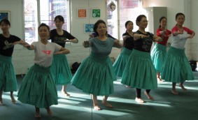 Kapuahaulaniです。昨夜の楽しかった宴の疲れも何のその、今日は寒い月曜日、今年最後の札幌校のフラレッスンが行われました。いつもの様に、皆さん汗びっしょり、スタジオの中も湿気って、鏡が曇ってしまう位の熱気で、今年の踊り納めを思う存分満喫した一日でした初級クラスのベーシックからスタートしたレッスン、今日は特にオーステップの足の置き方、身体の向き、そしてお尻の動かし方に重点を置き、先生から何度かストップを掛けられる中、お互いに足の位置を確認しあって、練習しました 真剣に一つ一つのステップを確認ステップ練習に引き続き、ハンドモーションの練習を向かい合わせで行い、先生が個々に見て回り、正しい動かし方を指導して下さいました。手首を使って柔らかく動かすのは難しいですね手首の使い方を意識しながら・・本日は今年最後のレッスンと言う事で、全クラス、今まで習った全てのオリを練習しました。オリの後は、カヒコ練習です。このクラスでは、2曲続けて練習し、細かい部分を再度確認しながら、皆が揃える意識を持って、何度か踊り、エンディングの練習も行われました。 手の高さや身体の向きを先生がチェック!アウアナは帽子を使って表現力たっぷりに踊る、最近の課題曲と、先週から習い始めた新曲を連続して練習しました。皆さん大分表情も良い感じになって来ましたね勿論Hokuloa先生からは、もっともっと!とご指示が出ておりましたが・・・。まだ照れがあるかな?グレイシャスクラスでも、腰を八の字に動かす事を意識しての、ベーシックステップ練習からスタートです 先生が皆のステップをチェック! 全員でオリを唱えた後は、カヒコを2曲連続して練習しました。ベーシックの際も先生からご指導がありましたが、アミとアミククのステップに注意しながら、スタンディングのカヒコを踊り、座り方や立ち方のタイミングをあわせながら、ノホスタイルのカヒコを踊りました手の高さも合わせながら ノホのカヒコは座り方・立ち方も注意アウアナも最近の課題曲・新曲合わせて4曲を一気に練習し、全ての曲を先生がチェックして、一つ一つ細かい部分のハンドモーションを鏡で確認しながら、全員で合わせて行く意識を持って踊り、最後はイベントエントリー曲を鏡を見ずに踊る練習をしました新曲もすぐに覚える皆さんワヒネクラスのベーシックは、アミの左右ステップを連続して行う練習と、ウエヘの練習に重点が置かれ、特にウエヘは体重移動を意識しながら、腰のみならず、肋骨の辺りから、しっかりと横に振ってステップが踏める様練習しました 同じ歩幅でステップを踏める様にベーシックの練習を兼ねて、基本のカヒコを踊り、ここでも体重移動の意識、姿勢を崩さないで踊りきる事を意識して、練習しました!体重移動を意識しながらカヒコ練習歩きながらオリを唱えた後は、アウアナ練習です。まずはイベントエントリー曲を1番ごとに、細かい部分を明白にしながら練習し、先生にチェックして貰い、完成度を高めていく事を意識しました 目線にも気を配りながら!タイミングや角度も揃える意識を!引き続き、楽器の曲、先週習った新曲を練習し、これらも揃っていない部分をパーツに分けて繰り返し、不安な箇所を明確にして行きましたいつもの様に、最後の最後にアドバンスのカヒコを一度練習して、こちらも手の角度、高さを再度お互いに確認しあって、今年のフラレッスンは無事に終了です皆様、あっと言う間の一年でしたが、今年もフラレッスン、頑張りましたね。お疲れ様でした!来年もまたHokuloa先生ともども、どうぞ宜しくお願い致します来年はお正月明け、1月5日より新年のレッスンがスタートします。これからますます寒くなりますし、年末・年始の色々でお忙しくなられると思いますので、体調管理には充分気をつけて、新年には皆様と元気一杯に再会出来る事を願っています。それでは、皆様、良いお年をお迎え下さい! Aloha, A hui hou!