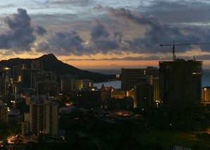 Kapuahaulaniです。昨日は大雪の北海道、交通機関も麻痺して、年末の帰省ラッシュに追い討ちを掛けていた様ですが、一夜明けた今日は、寒いながらも良く晴れ渡った真冬の一日でしたただ、夜のニュースでオアフ島全域で落雷の為停電があったとの事・・・・アメリカ版のYahooニュースを見てみると、現地時間の金曜日、6:30~7:00pm頃に停電になり、復旧には最低でも12時間以上を要すと言う事で、昨夜のホノルルは暗闇の世界だったようですよ ワイキキの多分ABCストアの中の様子日本からのJALハワイ便も欠航になったそうで、年末年始をハワイで過ごす予定の多くの日本人観光客にも影響を与えた様ですが、ホノルル空港も、クリスマス休暇をハワイで過ごし、本土やカナダなどに帰省する人々がスケジュール確認でごった返している様です薄暗いホノルル空港内の人々。停電になった事で、ポストクリスマスのバーゲンセールで賑わっていた多くのショッピングモールも臨時休業を余儀なくされ、買い物客も速やかにモールからの退去を命じられたそうです・・・。あの大都市ホノルルでそんな大規模な停電が起きた事を考えると、かなりのパニック状態が起こっても不思議ではないと思うのですが、その様な記事は幸い書かれていなかったので、安心しましたが・・・。時間的に、夕暮れ時で、まだ暗闇にはなっていなかったのも良かったのかも知れませんね。ホノルルアドバタイザーの見出しを見ると、あのアラモアナショッピングセンターも、停電が起き、復旧までセンターをクローズすると書いてありましたホノルルの市長さんのコメントで、現在ホノルルで里帰りバケーションを過ごしているオバマ氏の事に触れており、彼が滞在しているエリアは停電に遭っておらず、全く心配はいらないと書かれていましたが、寄りにも寄って、オバマ氏が滞在している間にこんなハプニングがあるなんて、関係者の皆様はさぞかし驚かれた事でしょうね・・・ホノルルはまだ夜が明けたばかり・・・。現在は土曜日の午前6:30頃です。この記事をアップしながら、何度もYahooニュースやHonolulu advertiserのページもチェックし続けていますが、まだ目新しい情報は出ていません。もう少しすると、ホノルルのビジネスアワーが始まるので、その頃から徐々に色々な情報が発表されていくと思います。私もHokuloa先生もホノルルには知り合いが沢山いますので、かなり気がかりな大事件ですが、詳しい事はまだ分からないですし、大事があれば、日本でももっと大きく取り上げられるはずなので、きっと大丈夫だと信じていますただ2日間続けて暗闇なのはあんまりなので、せめてこれから日が沈む前の明るい内に復旧が進みます事を心からお祈りしたいと思います。飛行機も早く飛ぶと良いですねこれからハワイに向かわれる皆さん、たとえ出発が遅れたとしても、腐らずに、ハワイの休日を思い切り楽しまれて来て下さいね