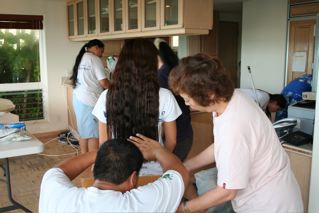 Hokuloaです。火曜の夜は、北見校のレッスン。寒い北見でもベーシックの中盤頃には、皆さん汗が流れているのが見えて来ます。北見校のスタジオはとても広いので、鏡は曇ったりはしませんが、皆さんの熱気で外の寒さも忘れてしまいます。さて、10月にハワイで髪をクムにカットしてもらった様子をupしましたが、2年前に切ってもらった時の写真が見つかりました。 これは最初のコンペに出場する前の時のもの 恐ろしい程に日焼けしてる私ですクムに髪を切って頂くと、裾のラインはまっすぐ。内側をすく事も少し短くする事もなく、ただただまっすぐ。街中を歩いていた時に、前を歩いていた女性の髪の裾がまっすぐでした。「きっとフラをやっていて、クムに切ってもらったんだね」と、ウイラニちゃんと話していました。それくらい分かってしまう「バッサリ」なまっすぐなんです。髪を長くして、邪魔に感じる事もあるけれど、前髪を切って、素敵なヘアスタイルにしてみたいと思う事もあるけれど、それでも変えられないのは、フラへの姿勢が表面からでも変えるのが怖いからかもしれません。もちろんこれは私が自分だけに思う事。生徒さんにヘアスタイルを強要はしませんが、レッスンの時は、決して顔に髪がかからない様にしてもらいます。長い髪はきちんと結ぶ、長い前髪はピンで止める。それはフラをする時には、当たり前の事だから。