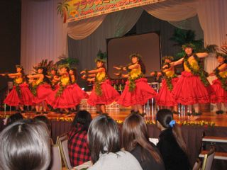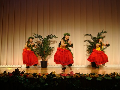 Hokuloaです。一昨日お知らせした札幌市生涯学習センター「ちえりあ」の発表会がありました。我がハーラウは、フラを指導しているAさんからお誘いを頂いて、19名で6曲を披露して来ました。フラは全3ハーラウ。他にはお琴・歌・コンテンポラリーダンス・タップ等、日頃から練習されている成果をそれぞれが披露していました。今回が第一回目。これから年々参加団体も増える事でしょうね。久しぶりに記念写真風にそれぞれの衣装で生徒さんをパチリ(踊っている時の写真がないので・・・) ハーラウの他のクラスにも人気のドレスで 我がハーラウ自慢のアンティの皆さんと 今日は6人で頑張ったワヒネ達 グレイシャスのうち3人が、舞台袖でわずか1分足らずで衣装替えを完了したのには感動着替えの手伝いをそれぞれ分担して協力したアンティの皆さん。さすがでした曲間が2分もなかったのですが、その心配は無用でしたイベントに出演する時は、今は前もって指示を出すだけで、生徒の皆さんがそれぞれに身支度を出来る様になり、始めは髪の整え方もNGの連発だったのが、今はなくなりました。一人一人が一つ一つ覚えてくれて来た事が、何より嬉しいですブログで5days Aloha の写真を送って頂きましたOさん、ありがとうございます カヒコの写真には、めずらしく裏方の私まで写っていました ダンサーが楽しそうに写ってますね今回の事で初めてOさんからメールを頂き、ブログを通じて素敵な交流が出来た事が、とてもとても嬉しいですこれからもどうぞ宜しくお願いいたします