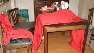 Kapuahaulaniです。以前も何度かブログでご紹介しているように、我がハーラウのカヒコの衣装は毎回手作りしています今回で3着目になる衣装はペレのメレに相応しい、赤いスカートと、黄色のベアトップに決まり、先日のオリオリフラパーティでめでたく初披露となった訳ですパーティでの衣装の評判は上々で、他のハーラウの皆様にもお褒めの言葉を頂き、「手作りとは思えないくらい素敵だわぁ~!」「大変だったでしょうねぇ・・・!」などど労いの言葉まで頂いたので、苦労が報われたと言うか、頑張って作って良かったなぁ、としみじみ思いました何度もお伝えしている様に、私はお裁縫は大嫌いで、以前から衣装のお直しなどが必要な際にちょこっとミシンをかける位で、衣装そのものを自分自身で手作りする様になるとは、考えた事もないくらい有り得ない事でしたフラシスター達にもびっくりされますが、実は自分自身が一番びっくりしているくらいで・・・(笑)ただ、3着目ともなれば慣れて来たのか、うんざりしながらも、自身を励ましながら、何とか1日で仕上げる事が出来ました。5メートルの生地を直線縫いだけとは言え、ミシンで何度か行ったり来たりさせるのは、狭い自宅では、それだけでもなかなか大変なんですよ。生地の重さで縫い目が曲がってしまったり、アイロンをかけるにも、広げなくては、アイロンしたそばから皺になってしまうので、出来るだけ通路などを使って生地を広げなくてはなりません ダイニングテーブルをフル活用 アイロンかけも一苦労勿論この作業を始める前には、Hokuloa先生が先日アップしていた様に、スタンプ押し を延々とやらねばなりません・・・。我が家の床はカーペット敷きなので、スタンプが旨く押せない為、フラシスター宅の広いフローリングのお部屋にお邪魔して、スタンプ押しをさせて頂きました今回のスカートにはウエストの所にフリルを付けたので、縫い目がずれてフリルの大きさが変わらないように、ピン打ちも行いました縫い目のアイロンかけも、線引きも、一々5メートルですから、本当に黙々とやらなければ、果てしなく感じて、いつまでも終わらないので、そこは、逃避したい気持ちを抑えて頑張ります ピン打ちと線引きの証拠写真(笑)5メートルの生地でフリル付きのスカートを作った後では、黄色のベアトップなんて、あっと言う間に仕上がり、何だかお裁縫のプロになった様な錯覚までしてしまう程でした(笑)勿論、そんな筈はなく、縫い目を見るとがっかりしますが、自分で着る衣装なので、全く気になりませんっ毎回作っている最中は、何度も逃げ出したくなりますが、仕上がった途端に、気分は一転し、早くこの衣装を着て踊りたいっと言う気持ちが溢れて来ます。当然ですが、衣装への思い入れも強くなる訳ですね。今回はHokuloa先生提案のスカート下に履き、スカートを膨らませる特製ペチコートも手作りしたのですが、先日の初お披露目では、その威力を存分に発揮して、衣装をより素敵に見せてくれました今まで、私同様、お裁縫とは無縁だったワヒネのNちゃんは、今回の衣装作りの為、わざわざミシンを購入したとの事・・・スタンプの数が限られているので、順番にスタンプ押しをした後、縫い始めている為、今現在、まだ制作真っ最中の皆さんもたくさんいるんですよ制作中の皆さん、頑張って下さいね。今は大変でしょうけれど、出来上がると本当にハッピーで誇らしい気持ちになれますので、全員で新カヒコ衣装デビュー予定の5days Alohaまで、自慢のお衣装を仕上げて下さいねそして、その衣装に身を包み、皆で心を一つにして、素敵なパフォーマンスが出来ると、より一層嬉しさが増しますね