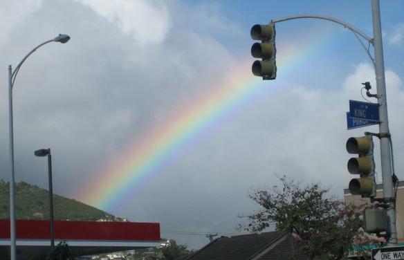 Hokuloaです。今日は東京から日本校のスーパーバイザーのSさんが来られました。私と同じ金曜日まで滞在の予定です。忙しいSさん、お疲れのまま飛行機に乗り、一睡も出来なかったのにも関わらず、ハワイに着いたら、そのまま一日の行動が始まり&夜のレッスンまで参加され、そのパワーには感服です。今日は午前から昼過ぎまではクムとSさんとお出かけをして、その後 ワヒネ用のドレスを買いにUちゃんが連れて行ってくれて、夜にはレッスンをして、その後遅い食事をしながら、クムとアンティの皆さんとの時間を楽しみました。まぁ 夜遅くに疲れている時に、複数人の英語を聞くのはとっても厳しいっでも、アンティの笑顔は癒されます今日もまた虹が出ました。ダブルレインボーだったんですが、1本は薄くてカメラでは写っていませんね。でも こんなに濃い虹は初めて。 実際はもっともっと濃くて奇麗だったんですよ 今日は2回も虹を見ました。もう一つは高くて大きかったっ日本で、まして北海道ではこんなに頻繁に虹を見る事がないので、虹を見ると「いい事がありそう」なんて思ってしまいます。明日はいい事があるかな?明日は・・・苦手な早起きをしなくてはいけません。寝坊しなければいいけれど・・・