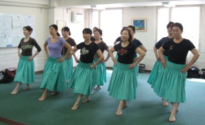 Kapuahaulaniです。今日の札幌は初夏の様な暖かさ暖房がなくても全く問題がない程気温も上がり、スタジオの熱気も最高潮!途中で窓を開けながらの練習となりましたいよいよ骨髄バンクチャリティコンサートまで1ヶ月を切り、今日はどのクラスもイベントエントリー曲の出入り、フォーメーション含めた練習を中心に進めらました。いつもの様に、初級クラスのベーシックからスタート今日はウォームアップを兼ねて、軽めのベーシック練習でしたが、手の高さや、角度の基本をもう一度しっかり身体に叩き込んで、曲に入っても自然とその位置をキープ出来る事を目標に、色々な高さによるハンドモーションを何度も練習しました。オリを唱えた後は、すぐにイベントエントリー曲の練習ですポジションに立って、鏡を見ながら、手の高さや角度などを確かめつつ何度か踊り、続いて鏡を見ないで、フォーメーションのラインを揃える意識を持って本番と同様に表情にも気を配りながら踊り、Hokuloa先生にチェックして頂きました 表情も良い感じ!大分動きも揃って来た所で、全員でフィナーレで踊る、もう1曲のアウアナの練習開始です。細かい部分で気をつけなければならない箇所を先生からご指摘頂き、そこに気をつけながら、一番、一番、正しいモーションを全員が意識しながら揃えて行きましたフォーメーションも慣れて来たかな?一端休憩を挟み、グレイシャスクラスの皆さんともこの曲を一緒に練習し、全体のフォーメーションの流れを明確にしつつ、自分の動きを確認していきました。休憩の間には、Hokuloa先生がハワイから持って帰って来て下さった、ウリウリの中身のアリイポエを皆に見せて下さったり、ハワイ旅行から帰って来たワヒネのIちゃんとSちゃんからのお土産スゥィーツを頬張ったりしました(アリイポエのお話は明日Hokuloa先生がブログにアップしますのでお楽しみに!) ハワイの感触を皆で楽しみました。 美味しいスゥィーツのお土産も頂きました!アップテンポのアウアナの合同練習の後は、グレイシャスクラスのベーシック練習です。こちらも今日は軽めでしたが、早いステップコールと、ハンドモーションをつけた様々なベーシックステップを全員が歩幅、手の高さ、身体の角度を揃える意識を持って行い、曲の中でもしっかりと身についていられる様に、お互いに鏡で確認しながら、ステップを揃えて行きましたオリ練習を挟み、このクラスのエントリー曲の練習です。しっとりとした、情感たっぷりで踊るアウアナで、今日は一度全員で踊り、細かい部分のタイミング、ハンドモーションの高さ、ステップと身体の角度を確認しあい、次に半数ずつに分けて踊り、ビデオ撮影を行って、各々の動きを自分の目でチェックし、出来ていない所を注意しながら、また全員で踊りました 少人数で踊ってビデオ撮影ビデオで自分の動きをチェック 真剣に動きをチェックする皆さん全員で最後に通しで踊っていると、5月31日にZepp札幌で行われる、北海道で活躍する、フラの先生方が一同に介し、ソロパフォーマンスを見せて下さると言う、イベントの件で、アイランドブリーズフロムハワイのパーソナリティとして皆さん御馴染みのノビー池田さん が、スタジオに訪ねて来て下さいました お忙しい中、ご足労頂きありがとうございました。その時におっしゃっていたのですが、今週の木曜日、4月16日HTB北海道テレビで3時45分から放映されている「イチオシ!」と言う番組にご出演されるそうです。5月に行われるハワイアンなイベントのお話などをされる様ですよお時間がおありの皆様は是非ご覧になってはいかがでしょうワヒネクラスは軽めのベーシックをハンドモーションを付けて練習してから、オリ練習を挟み、すぐにイベントの通し練習を行いました。このクラスはカヒコ2曲、アップテンポのアウアナ3曲を殆ど休み無しで踊りきらなければならないので、とにかく体力勝負で練習するのみと言う所で、まずはカヒコの入場曲、カイの振り写しをしてから、皆が自分の動きを把握して、揃って動ける様になるまで何度か練習した後、カヒコの一連の流れを通しで練習しましたアウアナも、フォーメーションが多いので、まず踊りながら自分の立ち位置を確認し、質問タイムを挟みながら、移動のタイミングなども明確にして行きました。ココナッツを打ち鳴らしながら踊る曲、アップテンポのアウアナ2曲を連続して何度か踊り、細かい部分を先生にチェックして頂いて、ハンドモーションやタイミングも揃える意識を持ちながらの練習です 勿論表現力もとっても大切! ワヒネらしい元気な笑顔で!個々の動きを把握した後、再度カヒコからアウアナまで全曲を通しで練習し、汗はびっしょり、喉はからからになった所で、今日のレッスンも無事に終了しました後本番までレッスンは2回、前日のリハを入れても3回を残すのみです。今日のレッスンで先生にご指摘頂いた所をしっかりと頭に入れて、皆で頑張りま