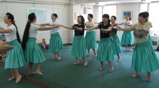 Kapuahaulaniです。この週末はメリーモナークフェスティバルのフラコンペティション観戦で、興奮された方も多かったと思います。そんなメリモも終了した今日は月曜日、札幌フラレッスンの日でした何故か土曜日から喉が痛く、熱も出てしまった私・・・。今日も体調万全とは言えませんでしたが、骨髄バンクまで残り少ないレッスン日、休んでいる暇はありませんっ私個人としては、休み休みのレッスン参加でしたが、今日も一日、皆さん頑張りました!いつもの様に、初級のベーシックからスタートしたレッスン。主なベーシックステップを軽く練習した後は、ハンドモーションの高さや角度を合わせてステップを踏む事を意識して、様々な高さに対応して、すぐに手をその高さに持って行かれる様に練習した後、先生の見本を見ながら、色々なハンドモーションを柔らかく正確な位置で出来る様に練習しました 先生の手首の動かし方を参考にオリ練習を挟み、すぐにイベントエントリー曲の練習開始です。出入りを含め、ポジションに入って、フォーメーションも合わせて何度か鏡を見ながら踊り、それぞれが他のメンバーの動きに合わせて行く事を意識して、細かい部分を先生に見て頂きました。鏡を見ながら、表情にも気を配って鏡を見ないでの練習では、特に表現力に気を配りながら、視線をどこに向けるかなど、先生からご指導を受けながらの練習になりました 鏡がなくても揃って踊れる様練習最後にフィナーレの曲をこちらもペアのフォーメーションを含め何度か踊り、このクラスは終了ですグレイシャスクラスのベーシックもハンドモーションに重点が置かれました。柔らかい動きは勿論ですが、手の広げ方、高さなども、ラインごとに揃える意識を持って、ステップを付けずに練習しました。フラは手の動きが命ですよね!イベントエントリー曲は、今日からフォーメーション練習に入り、各々がまずポジション表を見て、自分の動きを確認し、移動の仕方のみを何度かパートに分けて練習した後、最初から通して何度か踊ってみました。今日初めてやってみたフォーメーションでしたが、皆さん、綺麗に動けていて、移動する時もスムーズに出来ていたと思いますこの調子で本番まで自分のポジションをしっかりと把握していきたいですね。次に、振りの細かい部分を先生にチェックして頂くために、少人数に分かれて踊り、気をつけるべき箇所を先生からご指導頂きました 少人数で細かい所を合わせる意識を持って皆が同じ角度で踊れる様に練習次に常夏アロハ祭りで踊るスローアウアナを全員で一回通し練習をして終了したレッスン、レッスン後の今日のお楽しみは、Hokuloa先生のハワイ土産のチョコレートと、Yさんからの美味しい北海道スゥィーツでしたご馳走様でしたっ! 嬉しいおやつの差し入れありがとうございますワヒネクラスは、5月にご結婚を控えたMさんが久しぶりに顔を出してくれて、近況報告をしてくれたのを皮切りに、まずはベーシックで基本のステップを一通り軽く練習した後は、すぐにカヒコの練習に入りました。オリを唱えた後、入場曲カイの練習を行い、しっかりと自分のポジションまで進んで行かれる様に、しかもウリウリをきちんと振って、音を鳴らす事も意識しながら、Kaiを少人数に分かれて何度か練習しましたまずウリウリなしでステップ練習し 続いて少人数で前進練習カイから引き続き、カヒコ2曲を踊り、退場曲ホイで引けるまでの一連の流れを通し練習してから、小休止を挟み、アウアナの練習に入りましたこちらもフォーメーションで移動があるので、まず表を見て各々の動きを確認し、動きがしっかりと分かるように、通して何度か踊りました。ワヒネは曲数が多く、次々と踊って行かなくてはならないので、自分のポジションや移動位置はしっかりと覚えておきましょうねココナッツを使った曲の練習では、先生からステップを中途半端にしない事、余裕を持って、笑顔で踊る事などのご指摘がありましたね。曲のスピードに負けないようにステップをしっかりと踏む事を意識して練習していきましょうね最後に踊りなれたペアのフォーメーションがある曲を練習しました。こちらはさすがに余裕の笑顔で皆楽しそうに踊っています手の角度もばっちり、良い感じ! 身体の角度も揃っていますね今日は骨髄バンク本番までのスケジュールをレッスン中にお知らせ致しました。皆さんメモを取っていらっしゃいましたが、何か質問などありましたら、遠慮なくお尋ね下さいね。場当たり、リハーサル、本番と、連日お忙しいとは思いますが、来られる方だけで結構ですので、ご協力の程、宜しくお願い致します本番まであと少し、皆で力を合わせ、楽しみながら、頑張りましょう
