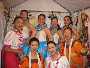 Hokuloaです。先週水曜日のイベント後日から日曜日まで帰省して間、北見校の生徒さん達は、網走市でのパフォーマンスがありました。北見校では網走市から通っている生徒さんが増え、今回は網走市在住の生徒さん達を中心に踊ってもらいました。 舞台袖に作って頂いた控えのテントで去年に続いて三吉神社の「夏期御例祭」に呼んで頂きました。やぐらの様なステージのバックは、寄付をした方や団体の名前がずらりと紅白幕に張られています。 フラのステージとは雰囲気は別なものですが、その催しを盛り上げるために呼んで頂いたのですから、どんなバックであろうと no problem 釧路・網走・北見市からの3人 この日、地元の方にハーラウに入って初めてお披露目した方も去年に引き続き見に来て下さった方、去年見逃した方が今年は楽しみに来て下さったりと、なんとも嬉しい話しを聞きました 励みになりますね残念ながら私は参加出来ませんでしたが、皆さんが楽しそうに報告をしてくれたのが何よりも嬉しかったです。お疲れさまでした