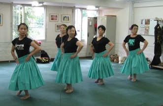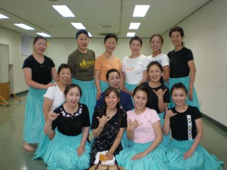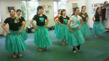 Kapuahaulaniです。楽しかった野外のイベントも無事終了し、一夜明けた今日は月曜日、いつもの事ながら、イベントの疲れも何のその、皆さん元気一杯でフラレッスンに参加されましたまずは初級クラスのオリ練習からスタートです。基本のオリを3つ連続して唱え、発声や発音の怪しい部分を先生からご指導頂き、Hokuloa先生がハワイに行かれている間に各自練習し、クム来道までに正しいオリを覚えられる様にと先生から宿題が出されました続いてベーシックステップは、特に足を置く位置を意識して、回りのメンバーの身体の角度、スカートの揺れに合わせながらステップを踏む事を心がけながら色々なステップを練習しました。 身体の向きを合わせながら!ハンドモーションは手首と肘を使って手を柔らかく動かす練習をペアを作ってお互いに確認しながら行いました肘を緩めて手首を持ち上げる練習カヒコは最近の課題曲を、今日は特にチャンティングのみならず、カーヘアも皆がタイミングを揃えて唱える事、手の高さを回りのメンバーと揃える意識を持って、パーツ、パーツを取り出し、ハンドモーションの精度を上げる練習をしました。 先生の手の高さを見本にしてアウアナは課題曲の2曲を通して踊り、細かい部分を先生がチェックして怪しい部分を取り出して練習しながら、各自正確なモーションを確認して行きました正確な動きを確認しながら最後に新曲のスローアウアナの曲説明と振り写しが行われて、このクラスは終了です。グレイシャスクラスもオリ練習からレッスンスタート基本のオリ3つと新しいオリを皆で唱え、先生にチェックして頂きました。 お腹から声を出す事を意識して。ベーシックステップは基本のステップを練習した後、ハンドモーションを付けながら、様々なステップを回りのメンバーの手の高さ、身体の向きに全員が意識して揃えて行く様にとの先生からのご指摘に応えるため、鏡で自分と他のメンバーの動きを確認しながら列を入れ替えながら練習しましたお互いの動きを確認しながらカヒコは課題曲の精度を上げる為、パーツ、パーツに分けて先生の説明を聞きながら、正しいハンドモーションを確認し、注意すべきパーツを重点的に練習しました。 チャント、カーヘアも忘れずに!アウアナは課題曲2曲を振りの確認の為、不安な部分の質疑応答を行いながら、バースごとに踊り、揃っていない部分を何度か踊って精度を上げて行きました。引き続きイベントエントリー曲を3曲連続で踊り、先生にチェックして頂き、各自正しい振りやタイミングを確認してからこのクラスも終了です皆が揃える意識でグレイシャスクラスのWさんがお家のお庭に咲いているお花を利用して、ヘアピースを作って来て下さいました。昨日のレイメーキングレッスンで習った髪飾りの作り方を早速実践して来られたのです写真では分かりにくいのですが、とっても可愛らしいブーケ風の髪飾りはレッスンに文字通り花を添えて下さいましたmahalo 写真左がWさんです。ワヒネクラスもオリからスタート!パフォーマンス時を意識して、歩きながらオリを唱えたり、目線の置き方にも注意しながら、基本のオリを3つ練習しました。引き続きベーシックステップは足の置く位置、歩幅などクムのスタイルを再度確認しながら、基本のステップを練習した後、それぞれのステップにハンドモーションをつけ、手の高さ、広げる幅、柔らかく動かすタイミングなどを意識して練習しました真剣にベーシック練習中元気な内に・・(笑)とフラ楽器を使いながら踊る、アップテンポのアウアナを2曲連続して踊り、先生にチェックして頂きました。 プーイリも使い慣れて来ましたね。カヒコはチャンティングを唱えながら踊る基本的な曲と、色々なステップが使われている最近の課題曲を連続して踊り、先生からチェックして頂き、全体の精度を上げる為パーツ毎に説明を受け、正しいモーションを各自で確認していきました基本のカヒコアウアナは最近の課題曲2曲を通して踊り、こちらも揃っていない箇所を取り出して正しいモーションの説明を受けながらの練習となりました 軽快なアウアナ最後にアドバンスメンバーでスローアウアナの通し練習をしてから、本日のフラレッスンは全て無事に終了しました私も昨日の疲れが残っていたのか、レッスン後はいつもよりくたくたになってしまいましたが、皆さんは今日も頑張りましたっお疲れ様です!Hokuloa先生が木曜日からハワイに発たれる為、来週のレッスンはお休みになります。再来週はクム来道ブランチレッスンに向けて、私がレッスンを担当致しますので、宜しくお願い致しますまた、8月26日(水)と9月4日(金)は慰問とお祭りのイベントが控えております。詳細は本日ご連絡しましたが、何か質問事項などありましたら、ご連絡下さい。26日の慰問では、昨日作ったレイとヘアピースを使う予定ですので、各自お花の保存をしっかりして、当日ご持参下さいね