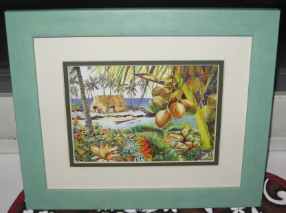 Kapuahaulaniです。本日無事にHokuloa先生はハワイに出発されました。昨夜は長期間留守にする前にしておかなくてはいけないお家の事や、仕事関係のもろもろを片付けたり、全くしていなかった渡航準備などに追われ、殆ど一睡もせずに北見を後にしたようです8時過ぎに成田空港より電話があり、今の所怪我もなく(笑)30分後には飛び立つとの元気な声を聞く事が出来、一安心しました飛行機もそれ程混んでいない様子でしたから、きっと今頃は昨夜の分までぐっすりと機内で爆睡しているのではないでしょうか?またフラ三昧の毎日・・・。頑張って来ていただきましょう明日からはこのブログもハワイからアップされると思いますのでお楽しみに本題ですが、このハワイの絵、とっても素敵だと思いませんか?私の誕生日に毎年アロハが一杯詰まった贈り物を送り続けて下さっている昔からのフラシスター(ソウルメイト)、H市在住のKちゃんが、送って下さったものなのです 暖かな色使いでハワイの風景を描いていて、ハワイが本当に恋しくなる絵画です。絵の素晴らしさは勿論の事、私はKちゃんがこの絵を描いたアーティストの壮絶な人生を一緒に送って下さった事に心から感謝しています。Kちゃんはご自身もライフワークとして、ホクレア号の活動をサポートし続けていますが、以前私も講演に伺って感動したホクレア号の日本人クルー、内野加奈子さんのブログからこのアーティストの事を知ったのだそうです。内野さんが語っているアーティストPeggy Chunさんの生き様は、彼女の、文字通り命を懸けて作り上げてきたその作品と融合し、彼女だからこそ、これらの作品達は生まれてきたんだろうと思わずにはいられませんKちゃんはPeggy Chunさんのもっと詳しいバイオグラフィーも送って下さいました。それを読むと、彼女がいかに強く人生を生き抜いたのか、一瞬たりとも諦める事なく戦い抜いてきたのかが私の心にすごく響いて、しばらく放心状態になるほど感動しましたしかもオクラホマ州出身の彼女が、我々フラダンサー同様、ハワイに魅せられ、1969年からハワイに移り住み、ハワイの美しい自然を描き続けていた方だったと言うのが、私自身のハワイへの思慕と重なり、より一層親しみを感じずにはいられず、是非とも皆さんに彼女の事を知って貰いたいと思い、ここでご紹介する事にしました彼女の生き方は私も勿論ですが、多くの方々に勇気を与え続ける事でしょう。アロハスピリッツに溢れた暖かな方だったそうです。心よりご冥福をお祈り致します・・・。そして彼女の存在を知らせてくれたKちゃん、いつも本当にありがとう。この絵は私の宝物になりました。勿論、器用なKちゃんのお手製ハワイアングッツもねMahalo nui loa