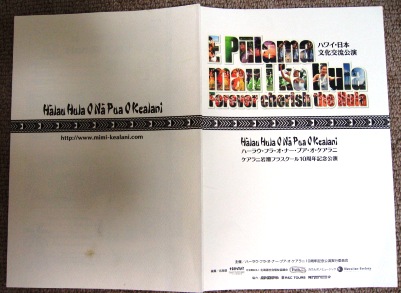 Kapuahaulaniです。お天気が良く、最近にしては暖かい一日だった札幌。今日は懐かしい方々に沢山お会い出来、皆さんの素晴らしいハワイアンショーを存分に楽しんで帰って参りました 以前Hokuloa先生と私がお世話になっていたハーラウの10周年記念公演が札幌コンベンションセンターで行われたのです。ハーラウを率いるI先生のクムフラでもあり、天使の歌声を持つミュージシャンでもあるウルベヒ・グェレロ氏他、ハワイからも大勢のダンサーを迎えての、まさに札幌の中のハワイを実現した様な素晴らしい内容のショーでした中でも、私たちがフラを始めてすぐに、ずっと同じクラスでフラを学び、色々な経験をし、苦楽を共にして来た仲間たちの晴れ姿を見ていると、本当に嬉しくて、まだ何も知らず、右往左往していた頃を懐かしく思い出したり、一緒にステップや振りの練習を必死にやっていた頃の数々の想い出が、走馬灯の様に頭を駆け巡ったりして、何とも言えない興奮状態に包まれ、心から楽しませて頂きましたコンサート終了後、ロビーに出ると、すぐにその仲間達が近寄ってきてくれて、ハグ、ハグ、ハグの嵐久しぶりに会ったのにも関わらず、いつも一緒にいたかの様に、お喋りで盛り上がり、10年と言う節目もあり、色んな事を懐かしく話しました。本当にフラを通じた仲間って良いですよねぇ離れていても、いつも心は一つと言うか、一体感を感じずにはいられませんでした。勿論、Hokuloa先生の事も話題になり、12月のホイケを前に、どうしても北見のレッスンをお休み出来なかった事情をお話しすると、皆、くれぐれも宜しく伝えてねと、暖かい言葉をくれましたハーラウは違えど、フラを続けている限り、この仲間たちとも繋がって行かれるんだろうなぁと、しみじみ感じたひと時でした。この仲間のみならず、昔なじみの沢山のダンサーさん達にも声を掛けて頂き、懐かしい顔・顔・顔皆さん、大きな節目を無事に終えられて、とっても幸せそうで、そのお裾分けをして頂いた様な気持ちになりましたお世話になったハワイのダンサーさんともお話する事が出来、大満足の夜でした。皆様、本当にお疲れ様でした。そして素敵なアロハをありがとうございました