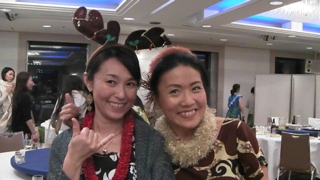 Haukeaです。今日は全日空ホテルでまゆみ先生率いるマーヘアラニさんと合同でX'mas パーティが開かれました。この会はとにかく笑いを取る余興がメイン。堅苦しい事は一切ナシ・無礼講の楽しい会。その様子を写真をメインにお届けします。写真盛りだくさんですよぉ MCは昨年に続きこのお二人余興の一番手は、私を含め4人でやったのですが写真がないっ写真を撮ってもらうのを忘れちゃったっ二番手は、 手作りとは思えない完璧な衣装 徹底した笑いへの追求なのぉ ここのダンスは可愛かったのっ ナース白衣でセクシーにゃんにゃん 今回の私の一番のお気に入りっ 目っ これにはハマリましたっ お笑い系の筈なのに、何故かカッコイイの エレガント&可愛らしくフラも交えて 笑顔がいいですねぇ このツノいいなぁ なんとホイもカイもあったサンバです やられましたぁ こちらはテクニックが凄かったっ アザを作りながら練習したそうですよ 余興のトリはこのチーム 難しい振りを軽快に踊っていましたよぉ さすがっ余興でお腹が痛くなる程に笑い、前半でハイテンション。そこからプレゼントをゲットするゲーム大会。その後は、ちょっとだけフラ。皆さんリラックスして楽しそうに踊ってましたよ。 こんな気楽に踊るフラが自然でいいのかもね そしてまたゲーム。 じゃんけんでの勝利者の笑顔 両手一杯に○○玉をゲットです そりゃぁ笑いが止まらないでしょ こちらはお楽しみ抽選会でプレゼントをゲットしての笑顔 まゆみ先生と私から 皆さんへ沢山のプレゼントを用意しました最後にまゆみ先生と1曲ずつソロを踊りましたよ スポットライトが気持ちいいの(笑) まゆみ先生のソロ キマってます最後はお決まりの Hawai'i Aloha を大合唱余興の練習時から楽しくこの日を迎え、笑いの渦だった今日一日参加して下さった皆様、ありがとうございました。あ~、と~~~っても楽しかったっ年明けには北見校での新年会。また楽しみが待ってるっ