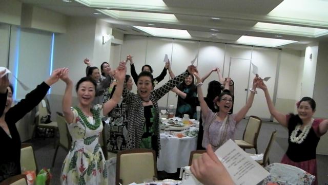 Haukeaです。数日前に-20℃近くになった寒い寒~い北見。でも、昨日は熱い新年会が開かれましたよ 外は極寒でも 会場は常夏気分っ 会場は市内のホテル幹事は、毎年持ち回り。 今年はMさん&Kちゃん車で来る生徒さんが殆どなので、アルコールはなし。それでも熱い盛り上がりでした。宴会芸は2組。去年初めてお笑い芸をしたのがウケて、今年もありましたよぉ人によりボカしが入っています(笑) 可愛らしくキャピキャピっ こちらは「昭和時代」 軽快なダンスを披露しましたよこれらは見る方も大笑いだけど、やってる方はもっと楽しいんですよぉ今回は2時間と短かったので、大急ぎで会は進行して行きました。北見の定番となっていた様々なゲームはなかったけれど、ビンゴをしたり、プレゼント抽選があったり一人で沢山ゲットした人もいたりして 「何入ってるの?」と思わず気になっちゃうモチロン、フラタイムもありましたよ レッスンの時よりもずっと素敵な笑顔で踊るな~ こちらはフィットネスクラブのお二人 new ドレスで踊ってくれましたよ楽しい時間はアッと言う間。 最後に皆でパチリ年に1回じゃ物足りないっと思う程でした。あ~、と~っても楽しかったっ