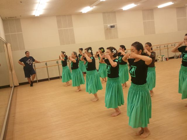 Kapuahaulaniです。いよいよ骨髄バンク・命のふれ愛コンサーも目前に迫り、今日も大きなスタジオをお借りして、イベントエントリー曲の練習をどのクラスも頑張りました会場に入ってから、まずは初級クラスの皆さんと一緒に本番のステージを想定したテープ貼りを行い、その後、オリ練習からレッスンスタートです最近の課題曲で、習った中で一番長いオリを皆で唱え、先生にチェックして頂きました。 忘れない様にねベーシック練習の前に、まず骨髄バンクで使われる衣装やアクセサリーの確認、集合時間やスケジュール等の説明があり、各々必要なメモを取りました。各々でメモを取ってベーシックステップは貼ったテープのラインを使い、歩幅が一定になる様に意識して、基本のステップを練習してから、ステップに付随するハンドモーションも一緒に付けていき、慣れて来た所で、手踊りにならない為の上体の使い方の練習も行いました まずはステップ練習続いてこのクラスのエントリー曲を通して踊り、揃っていない部分の練習を繰り返し、全体の精度を上げて行きました。歩幅やステップ毎の立ち位置なども、途中に先生からストップを掛けられながら、各々で確認して行きましたグレイシャスクラスの皆さんが来られ、一度休憩を取ってスゥィーツタイムを挟みました先週お渡し出来なかったAちゃんに頂いたロイズのチョコバーと、来月から入会される事が決まったワヒネのSさんから頂いたキスチョコを皆さんと一緒に美味しくご馳走になりましたっAちゃん、Sさん、ありがとうございますチョコ三昧で幸せ合同ベーシックでのオリは、入室の際に唱えられる基本のオリを皆で練習し、冒頭よりお腹から声を出す意識で、テンポなども気をつけながら唱えました 響く声でこのクラスでもベーシックはテープのラインを使って、歩幅を揃える意識で途中先生からストップを掛けられ、足の位置や身体の向きなどを各々で確認しながら練習してから、ステップに付随するハンドモーションも付けて行きました歩幅を意識 身体の向きも続いてこのクラスでもイベントの詳細と、エントリー曲それぞれのステージに出て行くタイミングや踊り出しまでの動きの確認が行われ、質疑応答を挟み、各々で必要なメモを取りました先生が説明中真剣にメモしてます続いて、出入りのタイミングだけをエントリー曲順に練習してから、各々が自分の動きを理解した所で、全曲続けて通し練習を行いました。初級クラスでのエントリー1曲、グレイシャスのエントリー1曲、両クラス合同のエントリー2曲を次々と踊り、タイミングなどが揃っていない部分を取り出して、揃うまで繰り返し踊り、精度を上げて行きました初級クラスのアウアナ合同エントリー曲揃える意識でイリイリを鳴らしてエントリー曲ごとに出入りのタイミングなどの質疑応答を挟み、自分の動きや立ち位置をしっかりと把握してから、お昼のクラスは終了ですワヒネクラスは駐車場が満杯で、遅れて来られた方が多かったので、早く来られた皆さんでカヒコのエントリー曲の練習を始めていましたまずは立ち位置を確認し、ステージ後方からオリを唱えながら立ち位置まで移動する練習を行い、出て行くタイミングやテンポなどを各々で明白にしていきました。オリ練習からすぐにメレの練習に入りましたが、今日は身体の向きやステップのタイミングなどを揃えて行く為に、いつもよりゆっくりとしたタイミングで踊り、先生にチェックして頂きました。揃っていない箇所の部分練習を繰り返し、精度を上げていきましたそうこうしている内に皆が集まって来たので、ワヒネのイベントエントリー曲、カヒコ1曲、アウアナ3曲、それぞれの入場のタイミング、踊り出しまでの動きを確認し、自分の動きを各々でメモを取りました自分の動きをメモ再度参加者全員でカヒコの入場・本メレ・退場までの流れを通して練習しました。続いて、アウアナもエントリー順に出入り、フォーメーション含め次々に踊り、不安な部分は質疑応答を挟んで、各々の動きを明白にしましたまた各曲ともに、揃っていない箇所を取り出して、精度を上げて行かれる様に、パーツ練習を繰り返しました ラインも注意してタイミングを揃えて ワヒネらしく元気に最後に本番までのスケジュールなど、イベント詳細を確認してから、今日のフラレッスンも全て無事に終了致しましたお昼に頂いたスゥィーツはワヒネクラスでもレッスン後にご馳走になりましたよ日曜日の本番まで後は土曜日の最終リハーサルを残すのみとなりました本日練習した点や先生からご指導頂いた点などは勿論ですが、衣装やアクセサリーなどの持ち物も早めに確認し、当日忘れ物がない様にしたいですね。尚、土曜日のリハーサルは1時半より琴似にある西区民センターにて行われますので、お間違えのない様、宜しくお願い致しますイベント前に、怪我をされた方や、体調を崩された方が多く、今日も大事をとってお