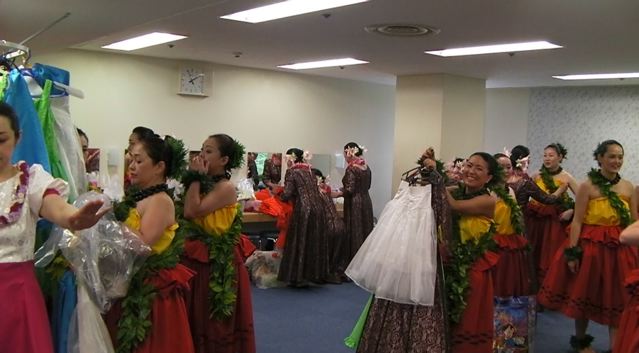 Haukeaです。毎年恒例となっている「骨髄バンク 命のつどい」。5月27日(日)に開催されました。upが遅くなってごめんなさい今年はカヒコ1曲、アウアナ6曲を踊らせて頂きました。同じ月にクムの来道レッスンとこのイベントがあった為、焦点を合わせるのが私的にはいつも通りとは行きませんでしたが、生徒さん達は頑張ってくれました。当日の楽屋は去年と同じ部屋。でも参加人数が少なめだったので、ちょっと広く感じちゃった。 楽屋で体慣らしのリハをした後、着替てスタンバイ。今回は、初・中級クラスは3曲。特にラストのファストテンポの楽器を使った曲は、よく頑張りましたっ 初・中級クラスの皆さんワヒネは、カヒコを入れて4曲。汗だくになってました 今回は、北見校からの参加者が少なかったけれど、参加出来なかったメンバーの分も、楽しんで踊れたようですよ。このイベントで特に心がけているのは、舞台が広い為に曲が変わる毎にストップしてしまう時間を少なくする事。その為に、前の曲が終わる前に次々とダンサーが舞台に出て行く様にしています。観客にしてみれば、曲間がつまらないですものね。その出入りの練習が生徒さんは大変でした。どのタイミングで舞台に出て、何歩出て、前奏で何歩出る・・・でも、本番はスムーズに出来ましたよ。 ニウとイプを使ったファストテンポの曲 舞台袖でパチリボケボケ写真になっちゃった こちらはイリイリを使った曲 ウヒネらしい可愛いアウアナの筈なのに ビデオからのpick upなのでボケボケ写真でごめんなさい最後に全員のパチリ お疲れさまでした 応援に来て下さった皆様、ありがとうございました。また観に来て頂ける様に、これからも頑張りますこのイベントが終わると、ホッと一息。で、日曜日からKapuahaulaniさんとハワイのアンティ達と旅行に出掛けて来ます。レッスンは18日までお休みです。ご連絡はPCメールのみでお願い致します。珍道中をup出来るかなっ お楽しみにっ
