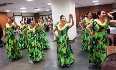 Kapuahaulaniです。今日は久々に暖かい日差しの月曜日、道路の雪も解け始め、スタジオに向かう足も軽やかでしたクムの来道スケジュールも決まり、イベント練習はもちろんの事、ブランチレッスンに向けてのベーシックや課題曲練習も皆さん、頑張りましたっ初級クラスは基本のオリをお腹から声を出す意識で、テンポを崩さないで唱えられる様、リズム重視で何度か練習してから、すぐにベーシックステップ練習に入り、一通りのステップを踏んでから、ペアを組み、腰の振り幅を大きくし、動かすタイミングなどを揃える為、先生の見本に合わせて体重移動を意識出来る様な練習をしました体重移動を意識して続いて、イベントエントリー曲の踊りながらの入場部分を取り出して、ラインを揃えて前進する練習を繰り返し、アップ・ダウンのタイミングも意識し、各々で自分の動きを確認しました踊りながらの前進表情も忘れずに!入場部分の確認が出来た所で、実際のステージでの立ち位置(2列の列幅や、隣との幅など)に関して先生から説明があり、その立ち位置での前後移動練習を行い、そのまま曲に合わせてフォーメーションも含め通して踊り、先生にチェックして頂いて、揃っていない箇所を取り出して繰り返しながら、全体の精度を上げて行きました振り確認しながら最後はイプを使ったアウアナを一度通して踊り、フォーメーション部分の確認をしてから、このクラスは終了です合同ベーシッククラスでも基本のオリを皆で唱えてから、ベーシックステップに入り、早いステップコールや右足、左足どちらからでもステップが正しく踏める様、一通り練習した後、それぞれのステップに付随するハンドモーションを付け、身体の揺れなどを防ぐ為、パートナー同士で協力して、肩を押さえあいながら、先生の見本に合わせて行きました早いステップコールでステップの高低差を確認しながらハンドも付けながら続いて全クラスで習っている最近の課題曲、イプを使ったアウアナをフォーメーション含めて踊り、先生にチェックして頂いて、注意点をご指導頂きましたイプの高さを合わせてビートも合わせてグレイシャスクラスは、まず次回のブランチ課題曲の振りをざっとおさらいしてから、曲に合わせて通して踊り、フォーメーションや正しい身体の向きやハンドの位置、ステップの高低差など、各々で確認しました手の高さも確認しつつ続いて、イベントエントリー曲のフォーメーション部分を取り出して、踊りながらの入場と合わせ、部分練習を繰り返し、各々で自分の動き方を確認してから、最初から通して踊り、質疑応答を挟みつつ、不安な箇所をクリアにしていきました。最後は来月のイベントエントリー2曲を振り確認しながら踊り、先生にチェックして頂き、タイミングや身体の向きなど、揃っていない箇所の正しいモーションをご指導頂き、正しいスタイルを各々でクリアにしてから、このクラスは終了ですワヒネクラスは明日に迫ったイベント、「プラザ真冬のビアガーデン」のリハーサル中心のレッスンが行われ、北見校からの頼もしい助っ人、Mさん&Mちゃんコンビも1日早く来てくれて、レッスンに参加してくれました少し早めに夕飯から戻った私たちがロコマイカイでのエントリー曲を練習していると、北見組が到着し、札幌メンバーが到着した所で、ベーシックステップを特にステップの高低差、アップ・ダウンの高低差を意識しながら一通り練習し、ウォームアップが出来た所で、明日のエントリー曲を次々に練習しましたまずは先週同様、Iちゃんの音頭で腹式呼吸をしながらの発声練習からスタートし、カヒコのオリは本番同様、前進しながら、身体や目線も使って唱え、そのままカヒコをフォーメーション含めて踊り、一連の流れを確認しました先生に揃っていない箇所をご指導頂いてから、再度その部分を意識しながら通して踊りました発声練習で大きな声を前進しながらオリを唱えます特にフォーメーション部分をスムーズに行える様、ラインも意識しながら繰り返して練習し、精度を上げて行きました2列で踊る箇所や1列になる箇所など続いて、アウアナは手踊り、プーイリ・イプ・ココナッツを使った曲と、次々に踊り、振りは勿論の事、列移動のタイミングや、その際のステップなど、本番通りの動きを、質疑応答を挟みながら、不安な部分を残さないよう、練習の中でクリアにしていきました全曲に移動が入りますフォーメーション確認して全エントリー曲の確認が終わった所で、鏡を見ずに最初から最後まで通しリハーサルを行い、汗びっしょりになった所でレッスン終了ですレッスン後のお楽しみは、Mさん&Mちゃんコンビからのお土産、遠くからわざわざ来て頂いただけでもありがたいのに、こんなに素敵なスゥィーツを持って来てくれました何曲も連続に踊って疲れた身体に、甘くて美味しいスゥイーツは本当に嬉しかったですどうもありがとう~ご馳走様でしたっめちゃ美