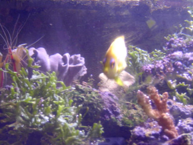 旧サンゴ水槽でナメピが帰ってきた時のタツ水槽が今ではタツがナメピの食欲のおかげで餌がとれなくなっていたのでタツを別の水槽に移動したので今はナメピとアカハラとオトヒメエビペアーとスカンクシュリンプとアケボノハゼのみの水槽になってしまいました。プラント球のメタハラが最初に点きマルチ球のメタハラが次に点灯し完全につくと海藻の付着具合がいい感じかな?でも・・・・餌をやるときナメピとかが岩の隙間から海藻を分けて出てくるのを見て少し窮屈かなと思ってます。こうなる前はナメピも人を見ると近寄ってきて餌くれと泳ぎ回ってたのですがこの状態になってから人を見ると隠れてしまい餌をやらないと出てこなくなりました。