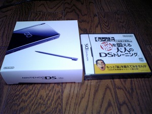 ニンテンドーDS Lite やっと手に入れました。(^。^)ソフトのパッケージを開けるとソフトちっちゃ!脳年齢はなんとか30代でした(^。^)