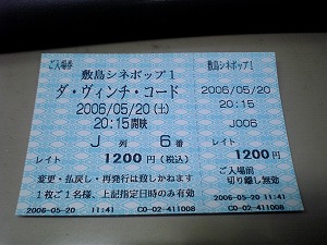 今日は敷島シネポップに『ダ・ヴィンチ・コード(字幕版) 』を見に行きます。この映画館は474席+車椅子6席分(全席指定席制) SRD-EX、DTS、SDDS他対応 となっており、そんなに大きくはありませんが、お勧めの映画館の1つです。職業柄、映画館を場所が近いなどの理由ではなく、音響設備、スクリーンの大きさ、座席の快適さを重視して選びます。この映画は原作が非常に話題となっていたのですが、まだ読んでいません。映画が気に入ったら読んでみたいと思います。