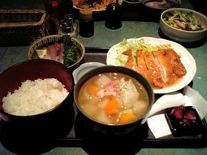 いろんなおかずから気に入ったものを3品選択して注文するランチです。今日は『たっぷり野菜の入ったスープ』『梅肉ソースのチキンカツ』『鯛とハマチの造り』を注文しました。好きなものばかり食べられるたので、大満足でした。(^。^)