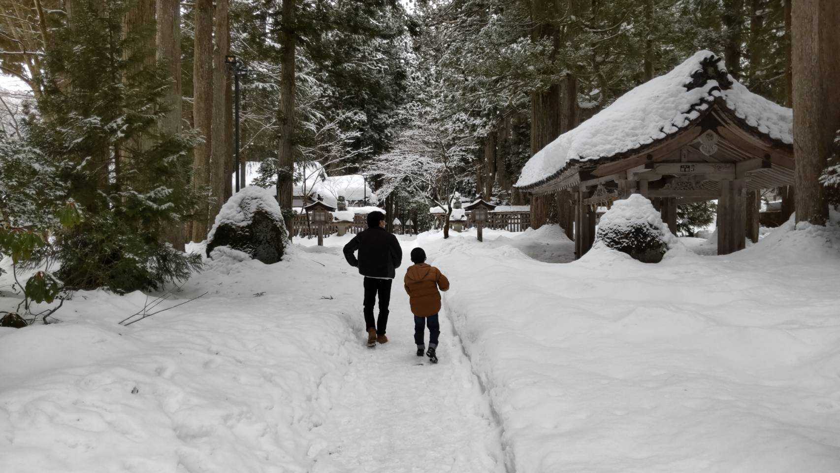 平野部に雪はほとんど残っていない状況だったので、思い切って中宮祈願殿まで行ってきました。