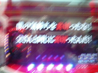 今日から夏期休暇っす!16日まで休みなんで、ゆっくり過ごします♪夜からパチンコに行ったんだけど、そこで鳥肌モンの出来事が・・・!エヴァンゲリオン2打ってて、確変中に「最後のシ者 全回転」が出た!!!「リーチかぁ・・・確変になれよ~・・・あれ?『さぁ、行くよ。』って出た・・・あっ!((((;゚Д゚)))ガクガクガクブルブルブル」まぢで鳥肌たちました!急いで携帯のカメラでパチリ。 緊張のあまりブレまくりっす(^^ゞ 反射してて見えにくいっすけど、カヲル君と初号機が見えますよね?最後はもっと見えにくいんですけど、カヲル君を握りつぶすシーンっす。 画像では「6」が見えてるけど、実際は「3」で当たって確変になりました♪いや~思い出しただけでも鳥肌たちますよ~!パチンコやらない人にはわからないでしょうけど、この全回転は滅多にでないんですよ~~~!大勝はしなかったけど、コレが見れただけで満足っす♪