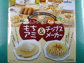 通販で買ったのが今日届きました!どこかのブログで見つけた、電子レンジでポテトチップスが作れるやつですヽ(´ー`)ノ スライスしたジャガイモを付属の容器にセットし、レンジでチンするだけでポテトチップスができるというすごいヤツです(´∇`)油で揚げないからかなりカロリーオフになるらしいです。ジャガイモのほかにサツマイモやカボチャもできるんで、チップスパーティーができますな♪誘う相手いないけど・・・(´Д⊂グスン近々やってみるんでまた日記で報告しますね~(^^)