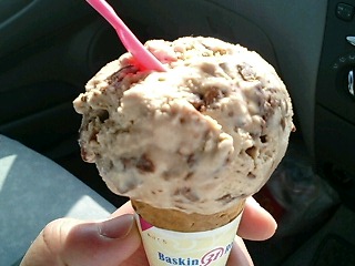 今日は仕事の合間に、こんなもの食べちゃいました~♪ サーティワンアイスの『ヘーゼルナッツドリームス』です!ヽ(´ー`)ノ久々に食べたんですけど、やっぱり美味しいですなぁ~屋外にいたのに、一口食べて一人でニヤニヤしちゃいましたΣ(^∀^;)急いで車に戻って写真を撮って、すぐに食べちゃいましたよ~やっぱり甘いもの食べてるときって、笑顔になっちゃいますよねぇ(・∀・)ニヤニヤ