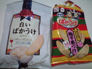 皆さん『ばかうけ』って煎餅知ってますか?コンビニでちょっと変わった味のを買ってみました。 右のほうはパッケージにインパクトがあるんですけど、味はそこそこって感じです。左のほうがパッケージはシンプルなんですが、味は抜群でした!食べだしたら止まらない味です。