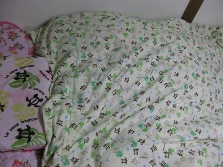 そろそろ寒さが増してきたので出した、冬用布団に ホヌの布団カバー を被せました