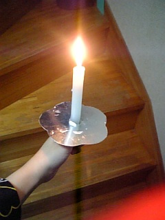 ろうそくで暖をとるこーこー三年生じゃけん♪