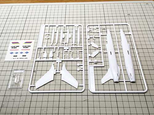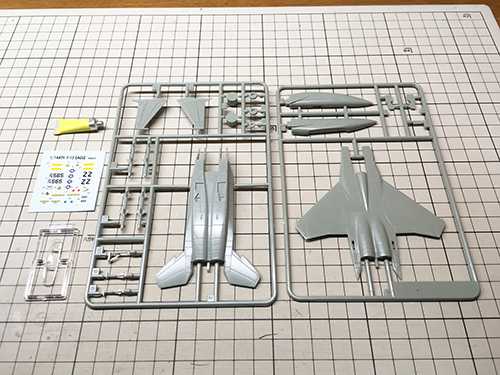 組立説明図と機体のランナー2枚とキャノピーそしてデカールです。